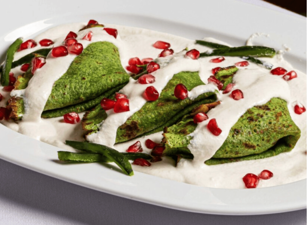 La estrella de la velada será la Crepa Independencia, que consta de tres crepas elaboradas con la receta secreta de Cluny, que las hace ligeras pero llenas de sabor porque se les adiciona el chile poblano al momento de hacer la mezcla, algo único. Están rellenas de carne de cerdo, con pasas, almendras, calabazate, aceitunas y un sofrito de cebolla, ajo, jitomate, sazonado con especias y chile poblano. Las crepas se bañan con una salsa de nogada elaborada con nuez fresca, con un delicado sabor lácteo que realza los sabores del fruto del nogal, y se decoran con granos de granada brillante, un ritual que celebra el mes de septiembre.