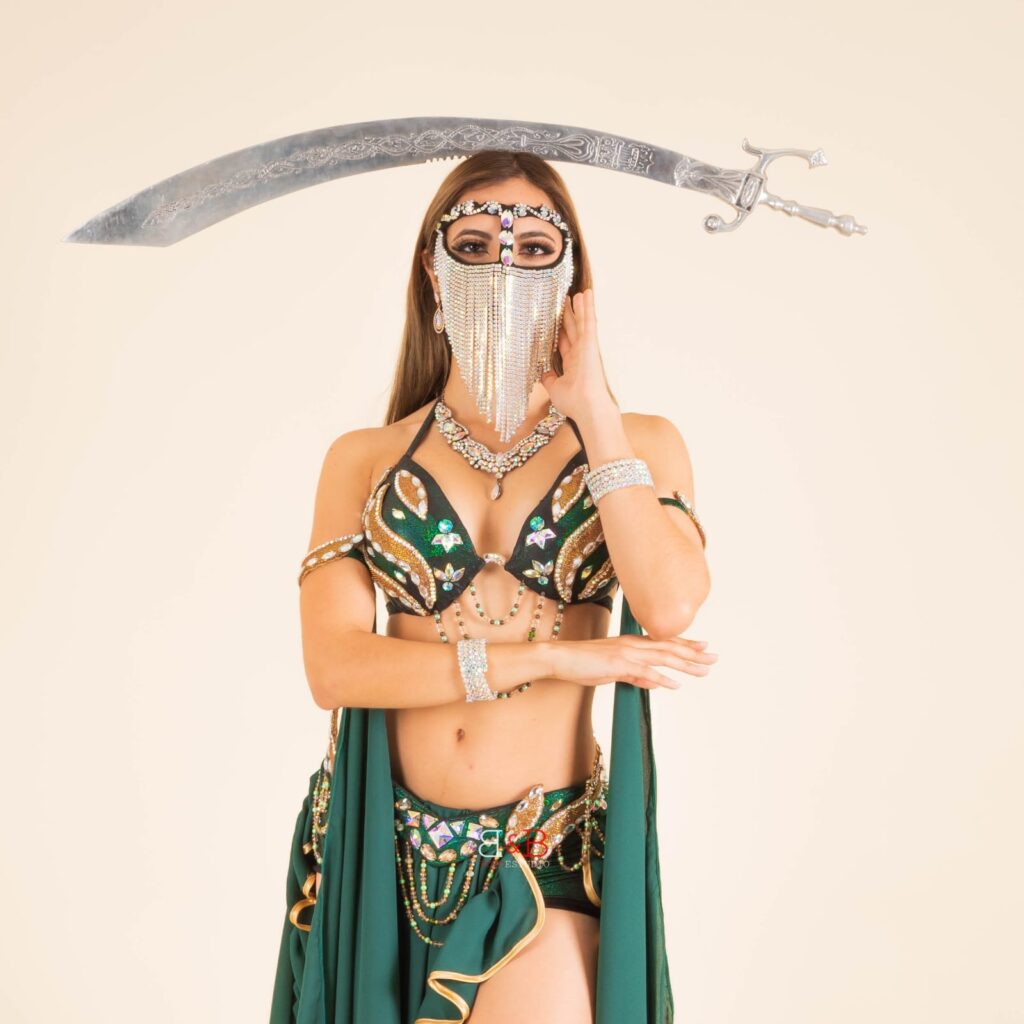 María no es solo la mujer que aparece en fotos deslumbrantes con vestuarios de lentejuelas, con faldas y velos que se despliegan como alas de mariposa. Es también la joven que, entre semana, trabaja en restaurantes como El Mesón del Cid, en el Centro Histórico, el Asador Libanés o el Jayi, ofreciendo espectáculos que combinan arte, disciplina y encanto. Los fines de semana, se multiplica: eventos privados, bodas, fiestas. “A veces termino con los pies adoloridos y la cabeza llena de pendientes”, admite, con una sonrisa resignada. “Pero soy feliz”.