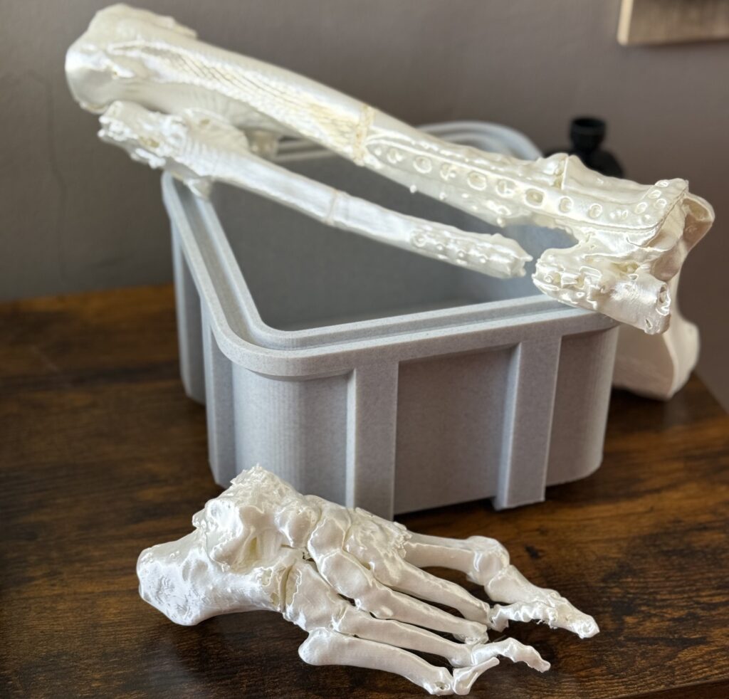 “La X1C hace el trabajo pesado: huesos, articulaciones, estructuras. Y la A1 Mini me permite trabajar detalles finos o soluciones rápidas. Ya son parte integral de mi práctica”, explica.